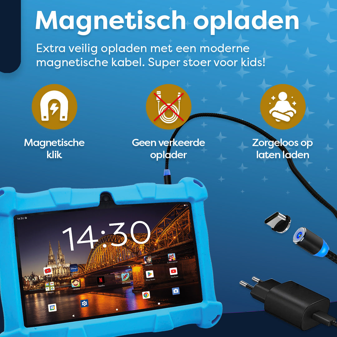 • Kindgerechtes Magnet-Ladegerät – Neu: Diese Kindertablet wird mit einem magnetischen USB-C-Ladegerät geliefert – extra sicher und kinderfreundlich! Das Magnet-Endstück bleibt im Tablet, sodass nur das Kabel magnetisch verbunden wird. Kein Reißen, kein falsches Ladegerät – 100 % kindersicher.