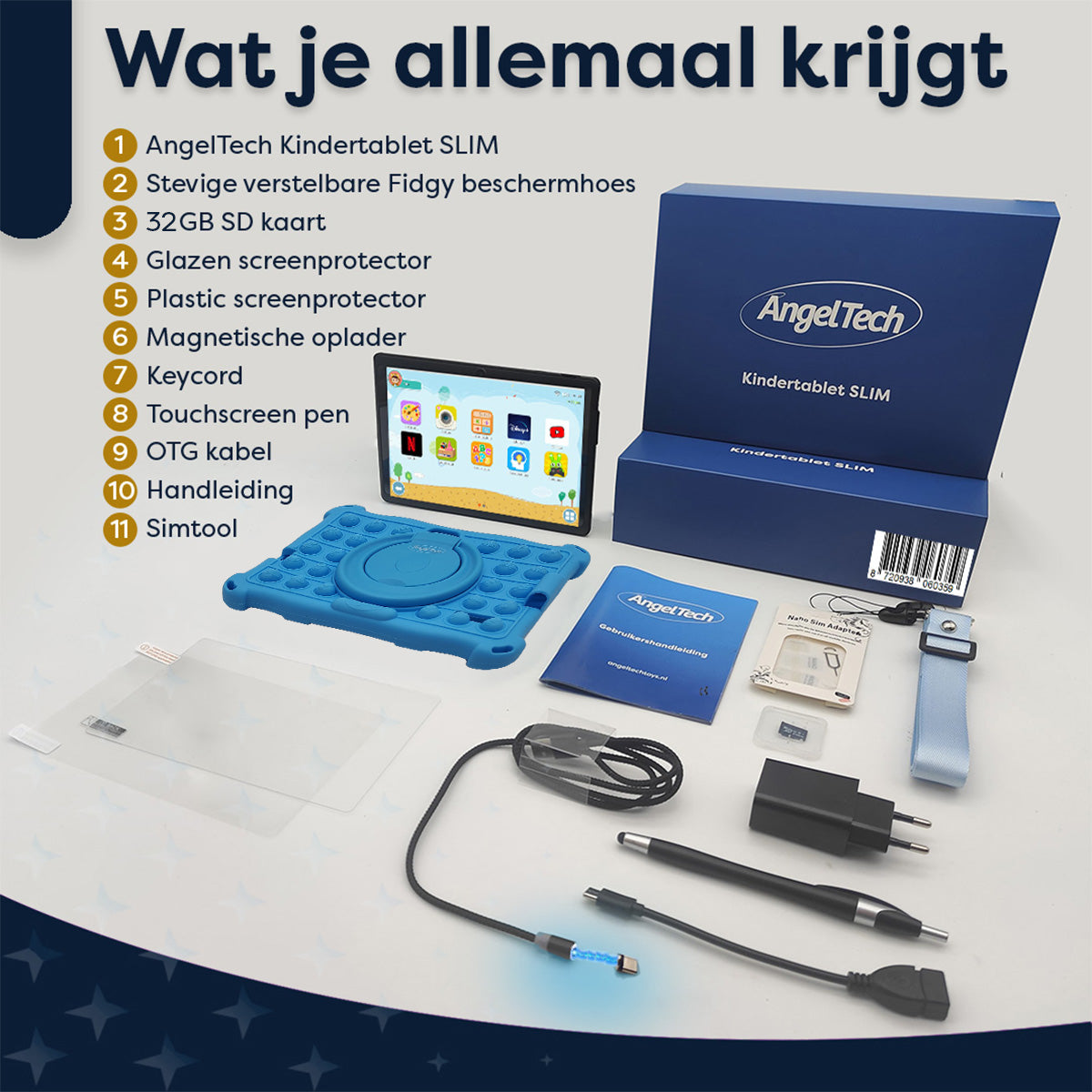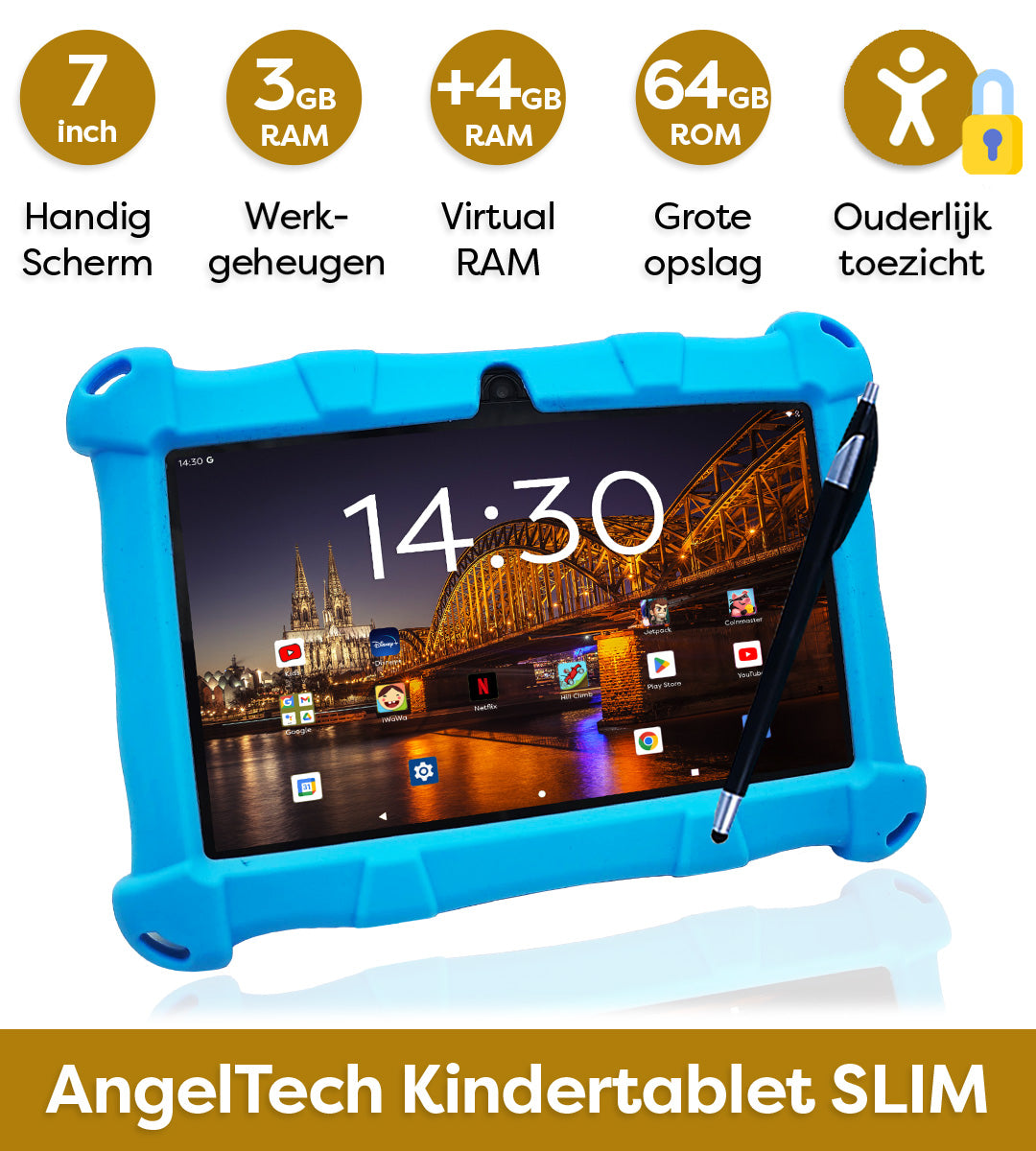 Deshalb bietet AngelTech das Kindertablet SLIM an – speziell entwickelt für Kinder, damit sie sicher lernen, spielen und Filme schauen können – und das alles zu einem fairen Preis!