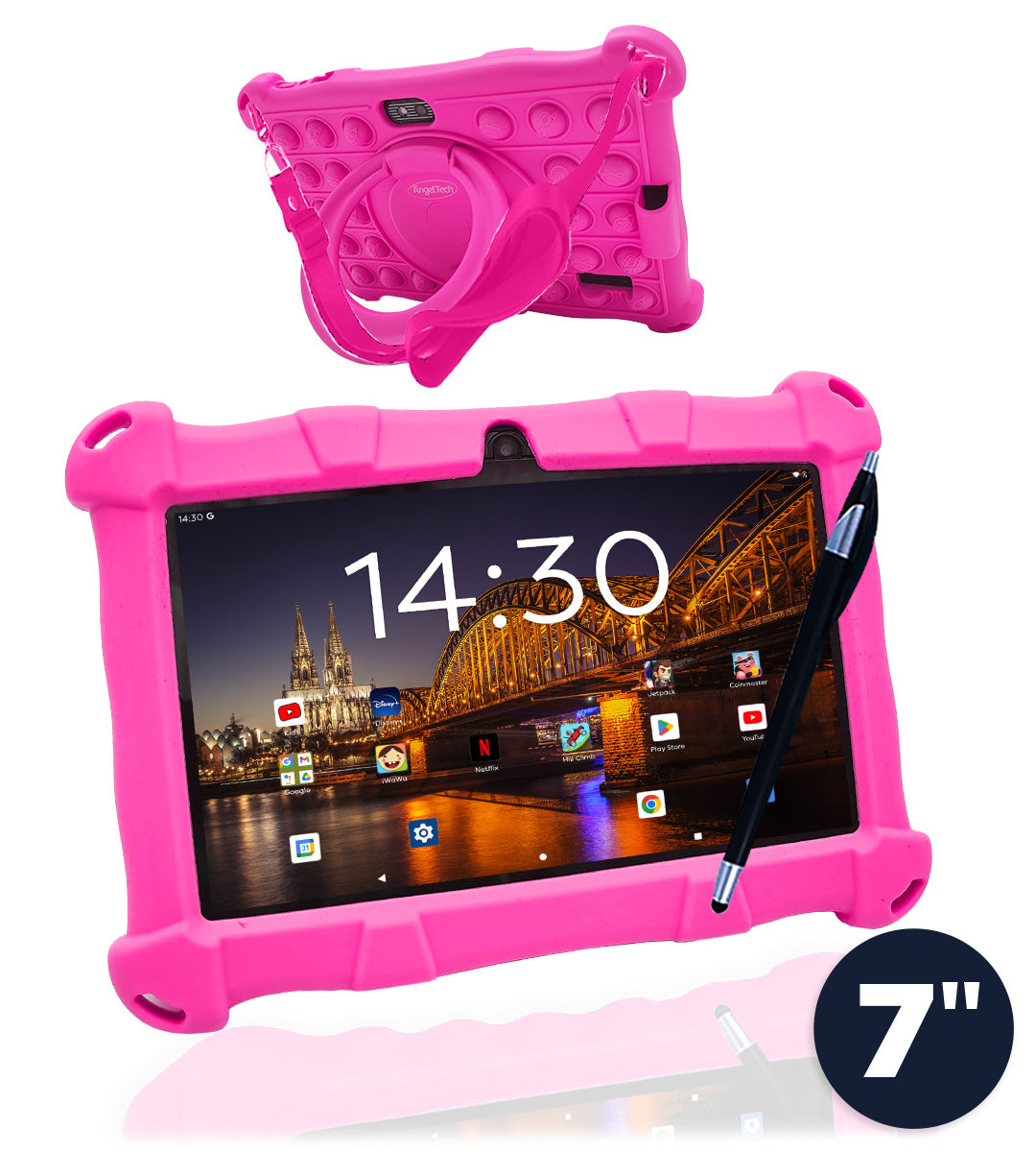 Das Tablet verfügt über ein schönes und robustes 7-Zoll-Display und wird mit einer stabilen Kinderschutzhülle geliefert, die auch in kleine Kinderhände passt – sowie mit vielen weiteren praktischen und spaßigen Zubehörteilen!
