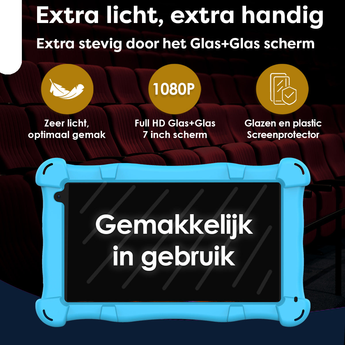 Een zeer sterk 7 inch Glas+Glas scherm. Niet te groot, niet te klein, perfect voor de allerkleinste.